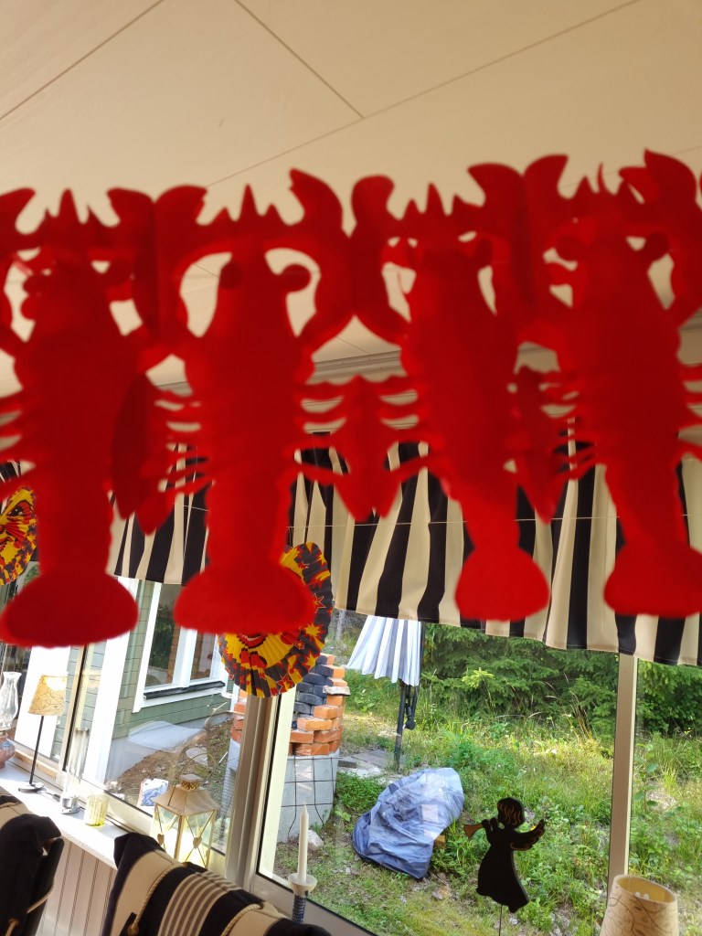 Ikväll blev det kräftskiva. Inte alla som äter kräftor så resten fick hålla tillgodo med grillade hamburgare. Men vi var några som gillar kräftor och som delade på två paket. De svenska var godast i år, smakade lite mer än de turkiska. Gott oavsett.