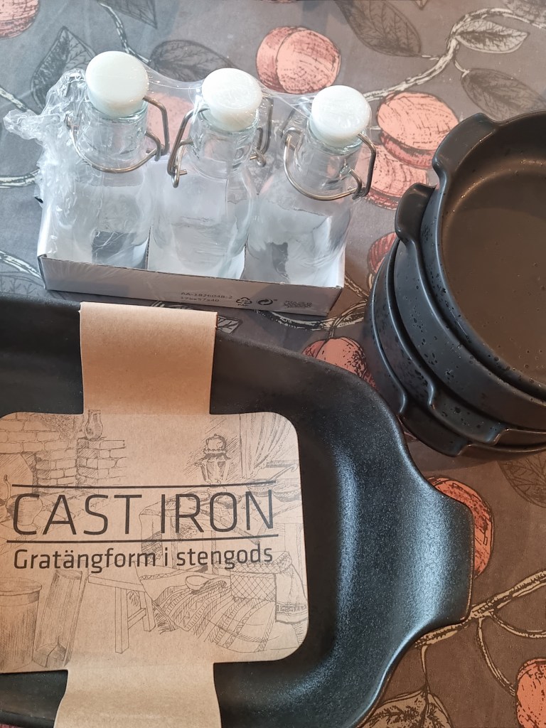 Hittade fina gratängsformar och även flaskor (dessa köpte jag på Ikea).