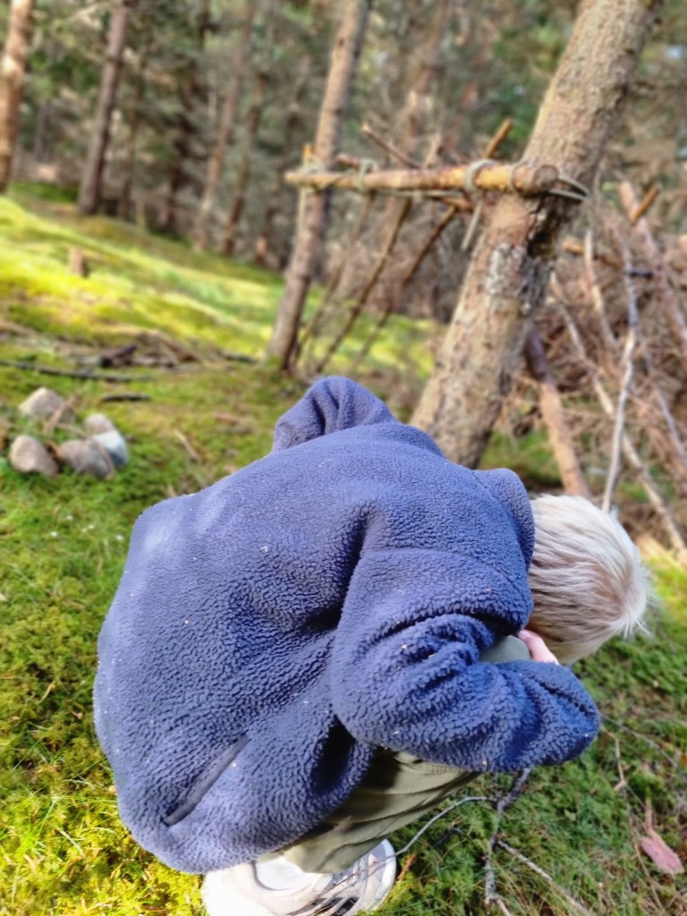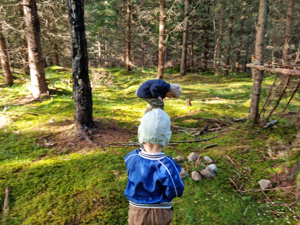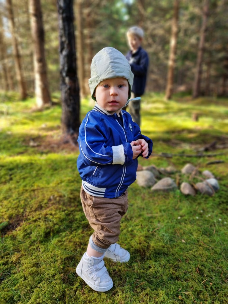 Vi drog på oss kläder, Ludvig fick en mössa som har minst trettio år på nacken, men den kunde han i alla fall inte dra av sig. Hans öroninflammation värkte hål igår så det gäller att vara försiktig. Sen promenerade vi in i skogen och utforskade killarnas koja och efter det blev det en liten promenad. Men det var nog allt jag mäktade med, för nu är jag helt slut 😂