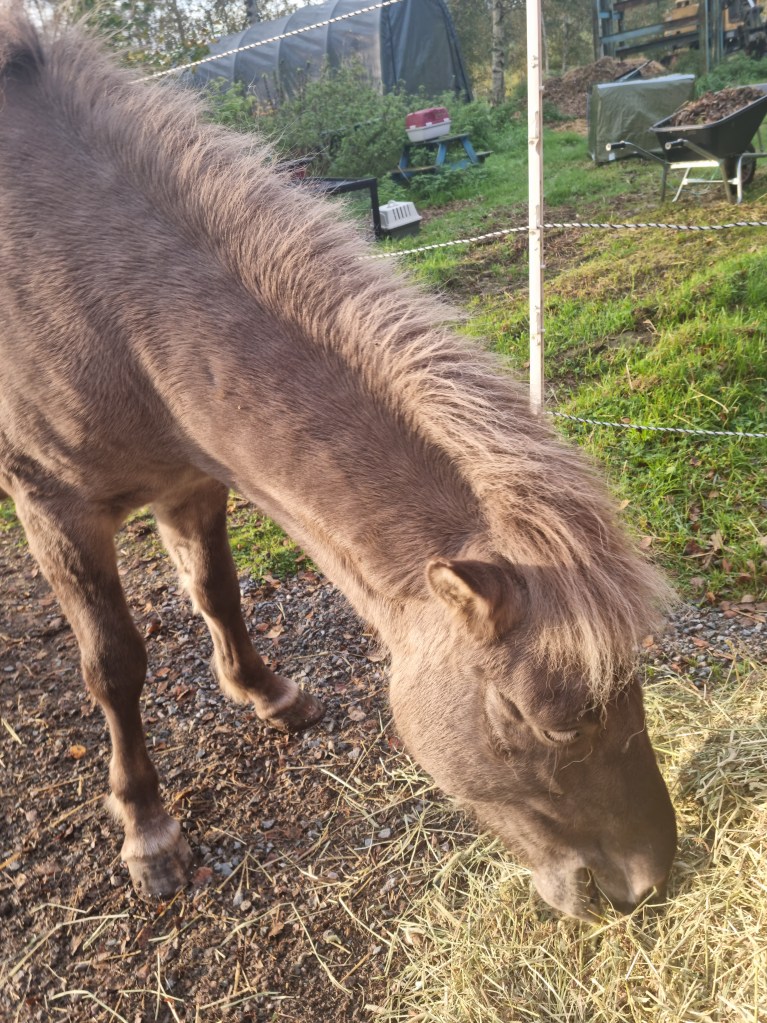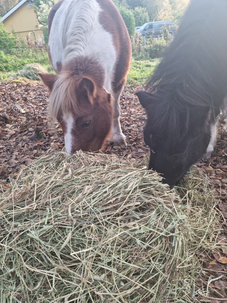 Morgon började på bästa sätt, en promenad till grannen för att mata hästarna. Så mysigt, och så härlig start på dagen. Nästan ingen som är ute och kör, lite kyls i luften och solen som är på väg. En härlig höstmorgon.