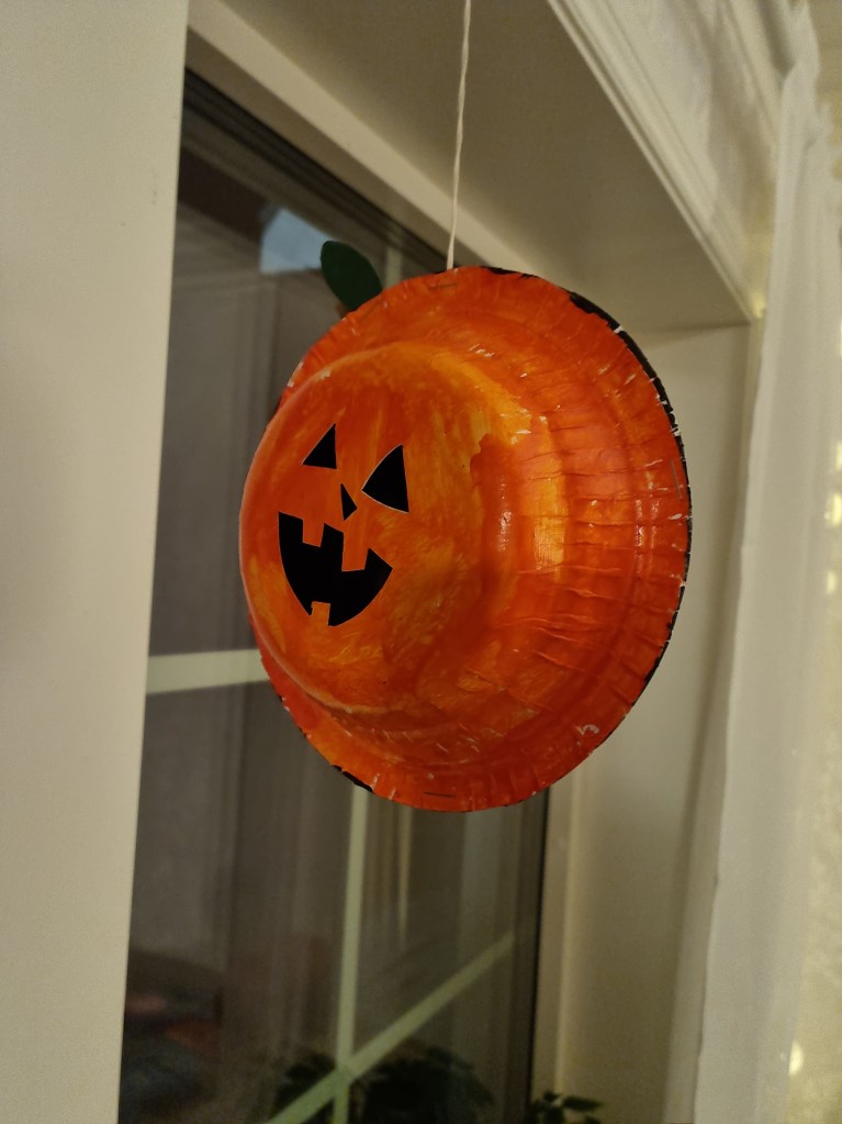 Vi har även pyntat lite inför Halloween med Lukas pyssel från skolan och med en liten pumpa. Liten tjuvstart..