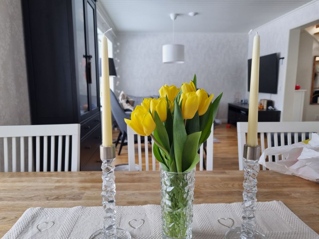 Har även hunnit påskpynta lite hemma. Bytt ut några ljus mot gula och tagit in tulpanerna. Vi planerade även påskens mat och vem som ska ansvara för vad. Så nu är vi redo 🐣🐥