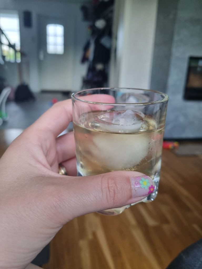 Halsen har inte riktigt gett med sig. Så jag gör ett försök att bota det med whiskyn som jag köpte i Skottland. Och ja, jag är nybörjare på whisky, så jag behöver fortfarande is. Men jag börjar uppskatta det mer och mer.