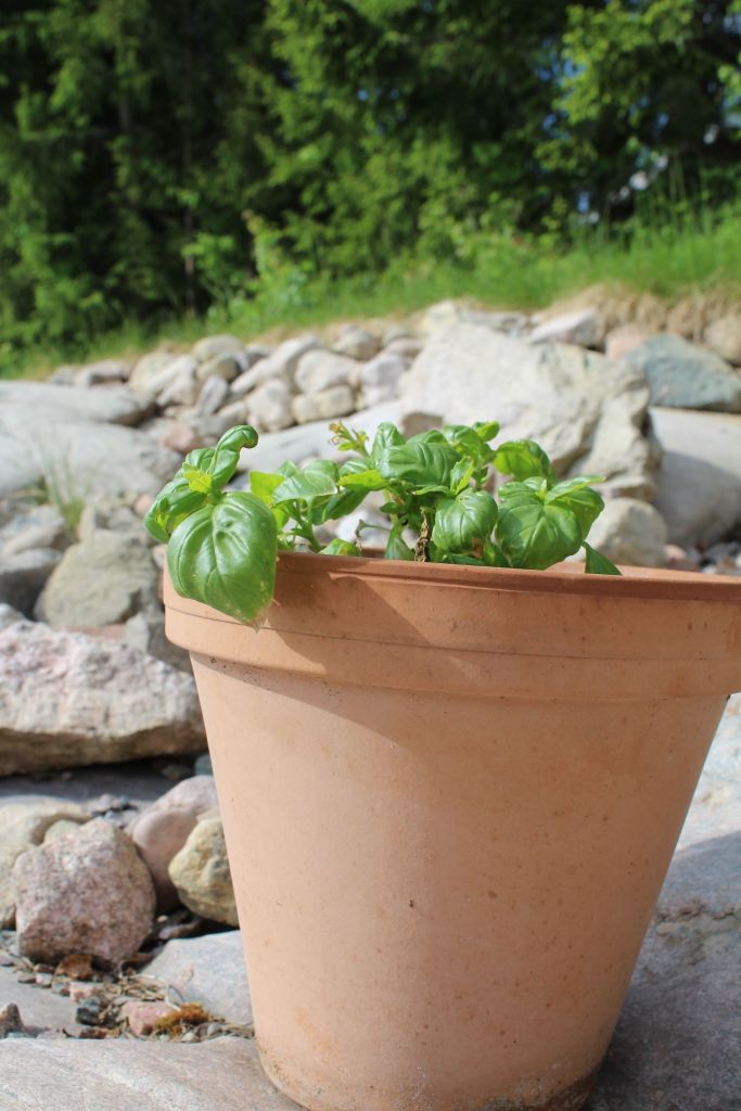 Jag har även planterat lite örter i krukor på våran stenhäll. Tycker att det är så lyxigt att kunna gå ut och hämta bara, en riktigt härlig känsla.
