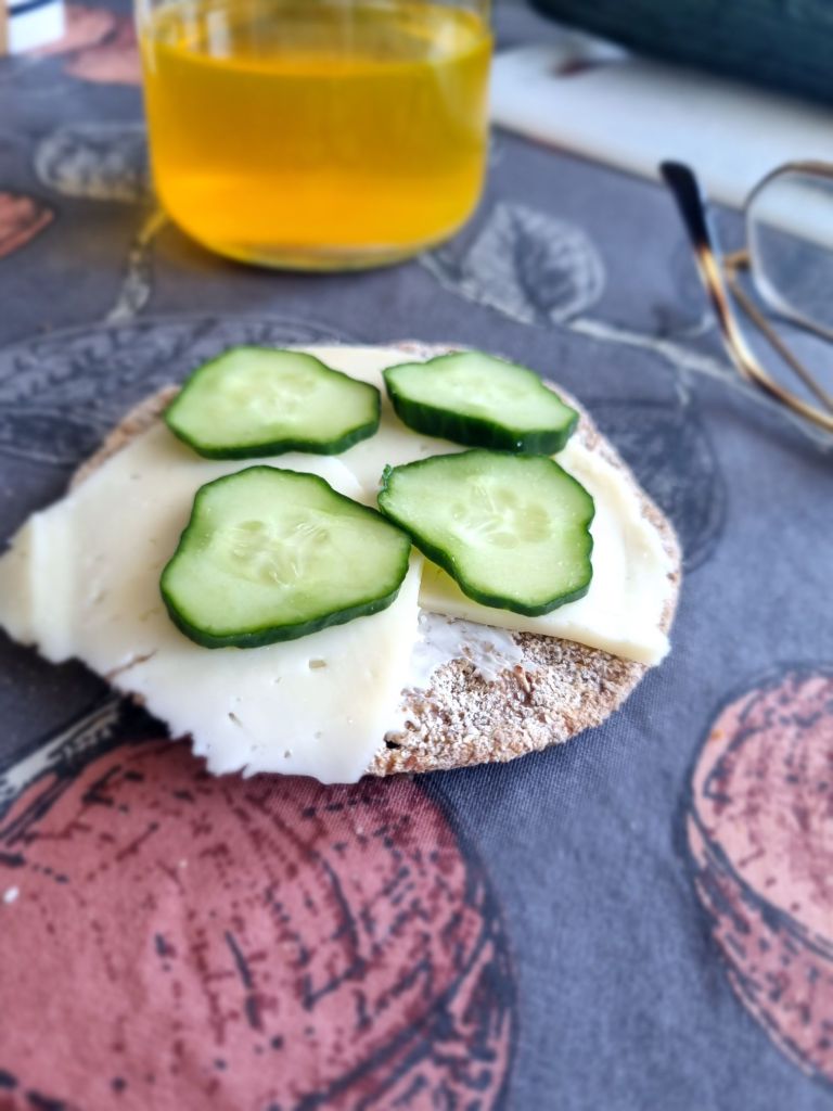 Började dagen med en macka med våra (läs mammas) hemodlade gurkor på. Så goda och smakrika. Sen blev det en kaffe på uteplatsen i solen. Det var 27 grader varmt redan vid 10 på förmiddagen. En riktigt varm dag.