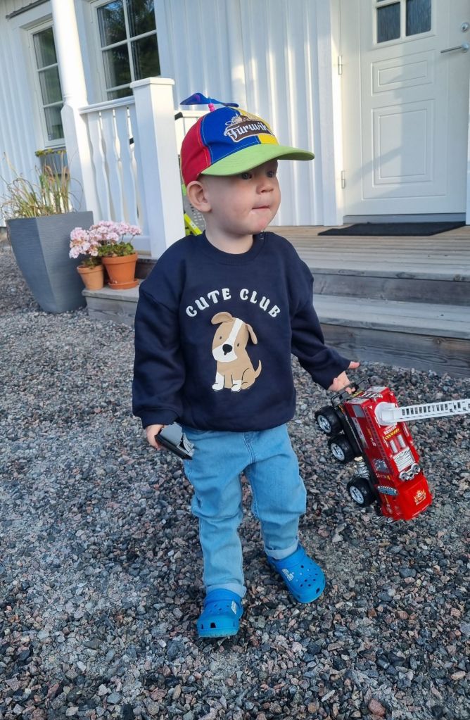 Men jag hann köra den här fina lilla killen till förskolan först. I nya kläder som inhandlades igår. Jeansen valde han helt själv.