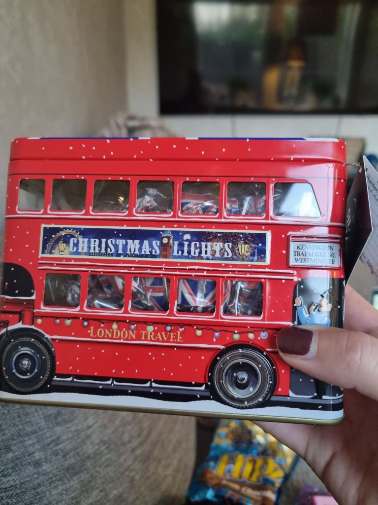Kunde inte låta bli att köpa den söta julbussen i England. Den är nu fylld med vaniljfugde, men tänker att när den är slut så ska den även fyllas med hemgjort julgodis. Kommer att bli så fin på vårt godisbord.