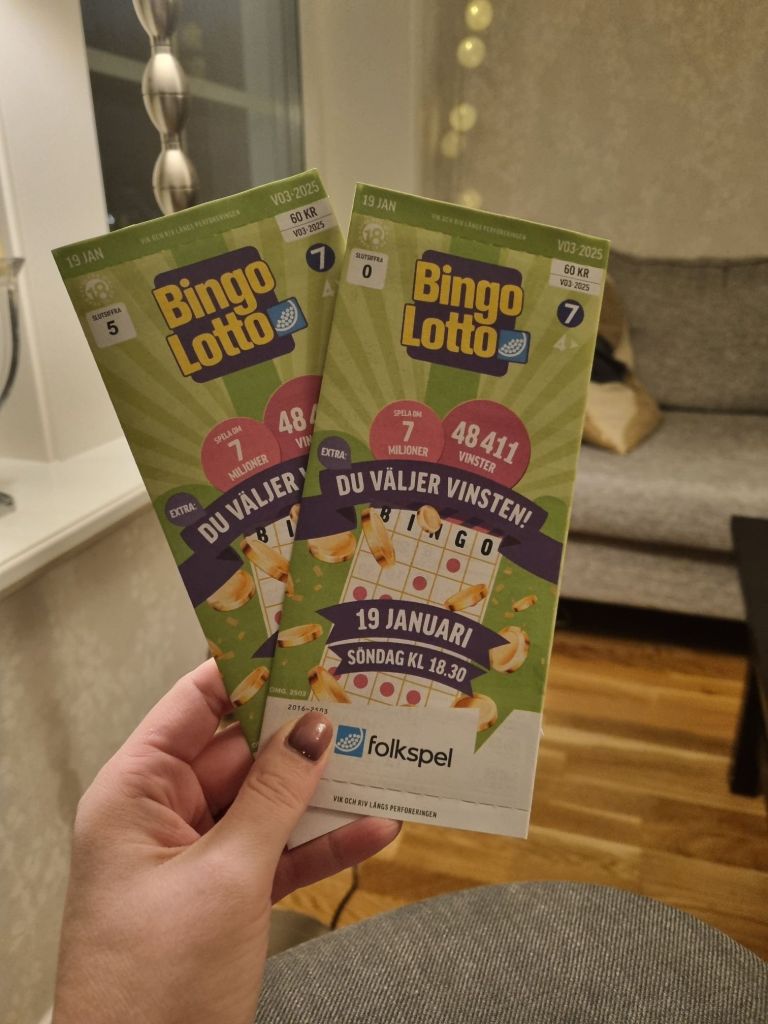 Nu ska jag och Lukas spela om miljonerna på Bingolotto. Han tyckte att det var kul, så vi köpte två lotter till kvällens spel. Få ser hur det går.