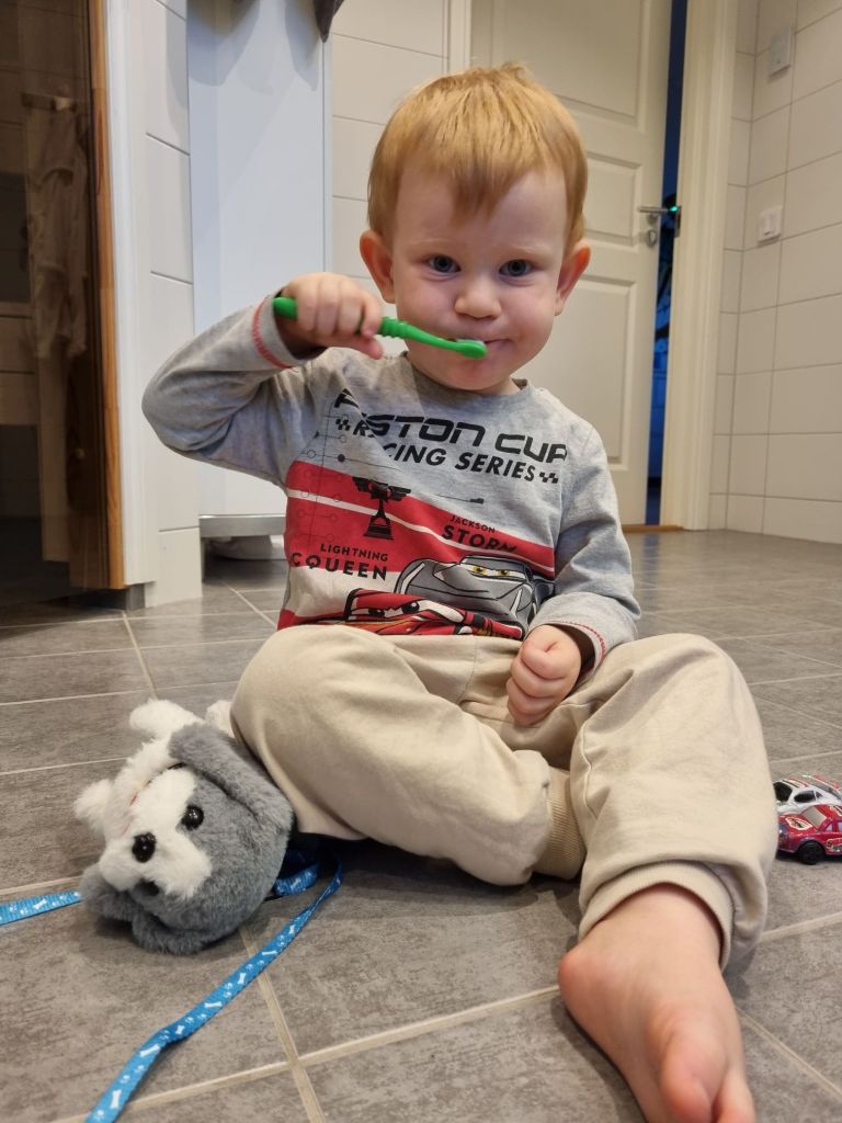 Den här godingen hänger med sin hund som han fick från Spanien. Den stackars hunden blir släpad i kopplet, glänsande och skällande. Men Ludvig vet hur man stänger av, så när det är dags för tandborstning får den ligga still bredvid 😊