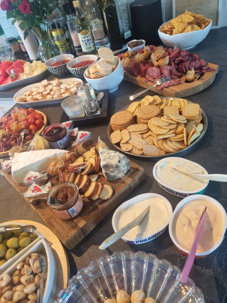 För att göra det lätt för mig så åt vi en massa plockmat. Perfekt när man är många och när det är barn med. Då kan alla välja att äta vad de vill. Och som vi åt, åt i flera timmar 😄 Men gott var det.