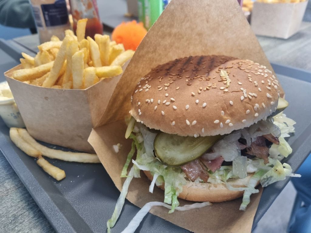 På vägen dit stannade vi till på Svanbygrillen i Tierp som hade väldigt goda hamburgare. Tror min hette något i stil med ”Rökiga Ragnar” och hade rökig majonnäs i. Väldigt gott var det.