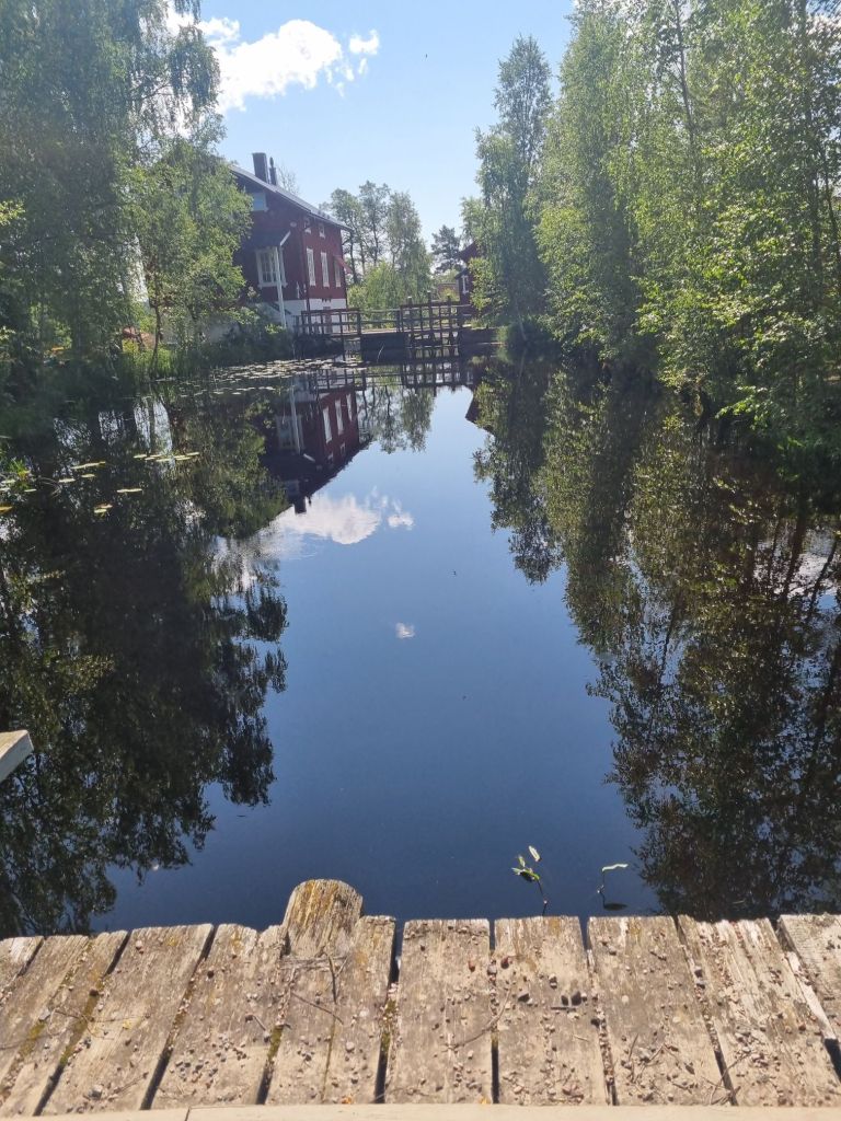 Omgivningarna var i sig sevärda. Otroligt vacker miljö med vattendrag och röda stugor överallt. Vi åt även lite lunch, på lokalproducerade varor.