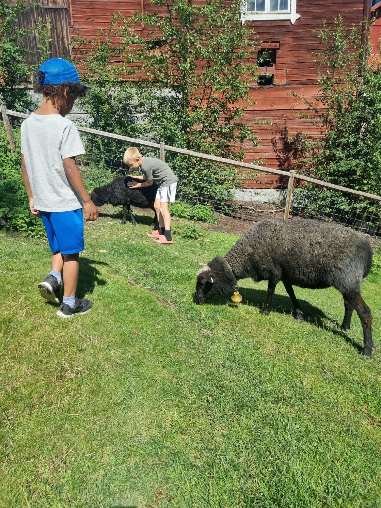 Idag blev det en liten utflykt med de grabbar som jag hade hemma. Vi åkte till Stora Lunån, som är ett mejeri, bageri och café och ligger ca 40 minuter härifrån. Inne på gården har de en massa olika djur och kul att titta på. Barnen matade och klappade djur för glatta livet.