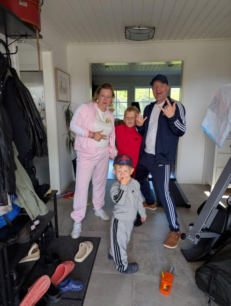 Igår var vi bjudna på en riktigt härlig 80- och 90-talsfest! Värdparet firade sina födelsedagar tillsammans, och eftersom de är födda på olika årtionden blev temat självklart. Vi gick all in och drog på oss färgglada träningsdresser – en i varje kulör – och bjuder såklart på en bild från en smått kaotisk hall där hela familjen fångades innan vi stack iväg.