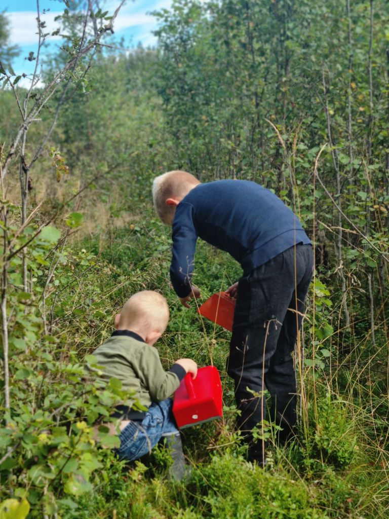 Igår tog jag och grabbarna en tur ut i skogen, och vi behövde knappt gå någonstans innan vi snubblade över ett hav av lingon. På bara en liten stund hade vi plockat ihop hela två liter! Det blev en så mysig stund tillsammans – vi pratade, skrattade och njöt av den friska luften bland lingonriset.
