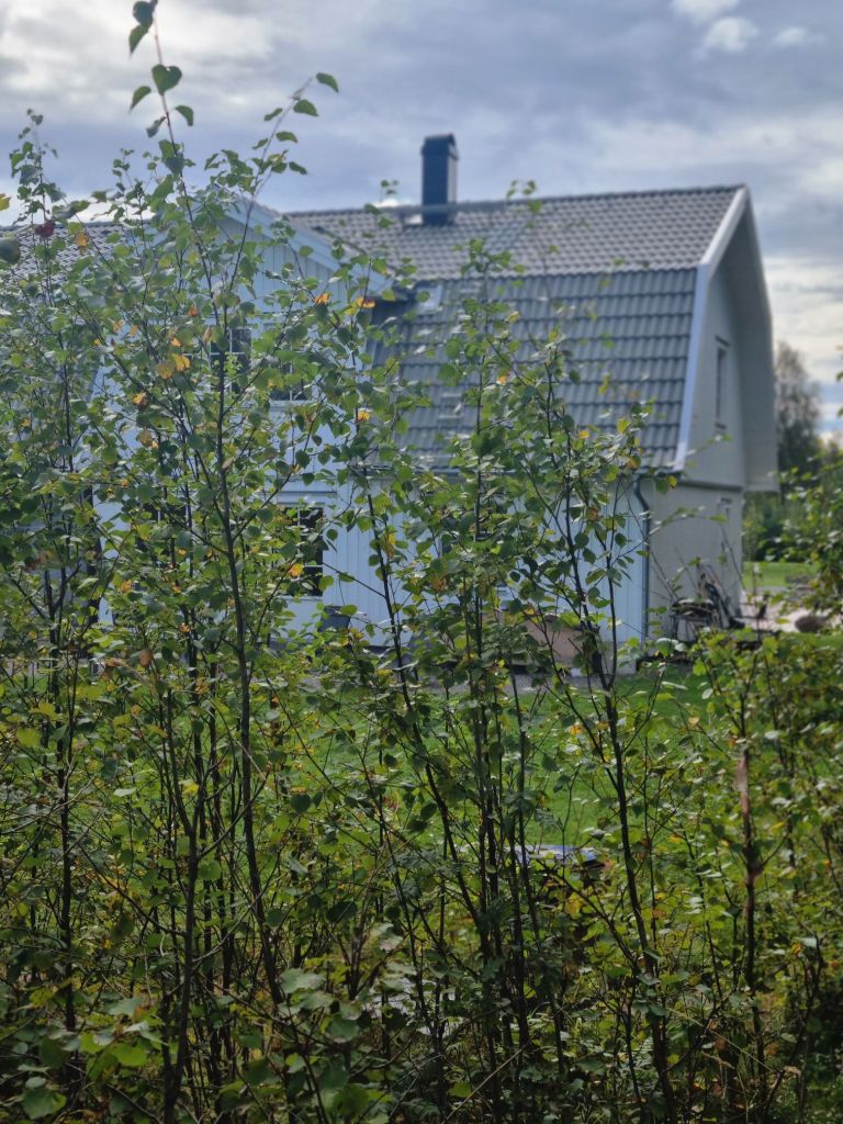 Mellan riset så kunde man skymta husets baksida 🥰 Det är en riktig lyx att få bo så här nära skogen 🌲🌲