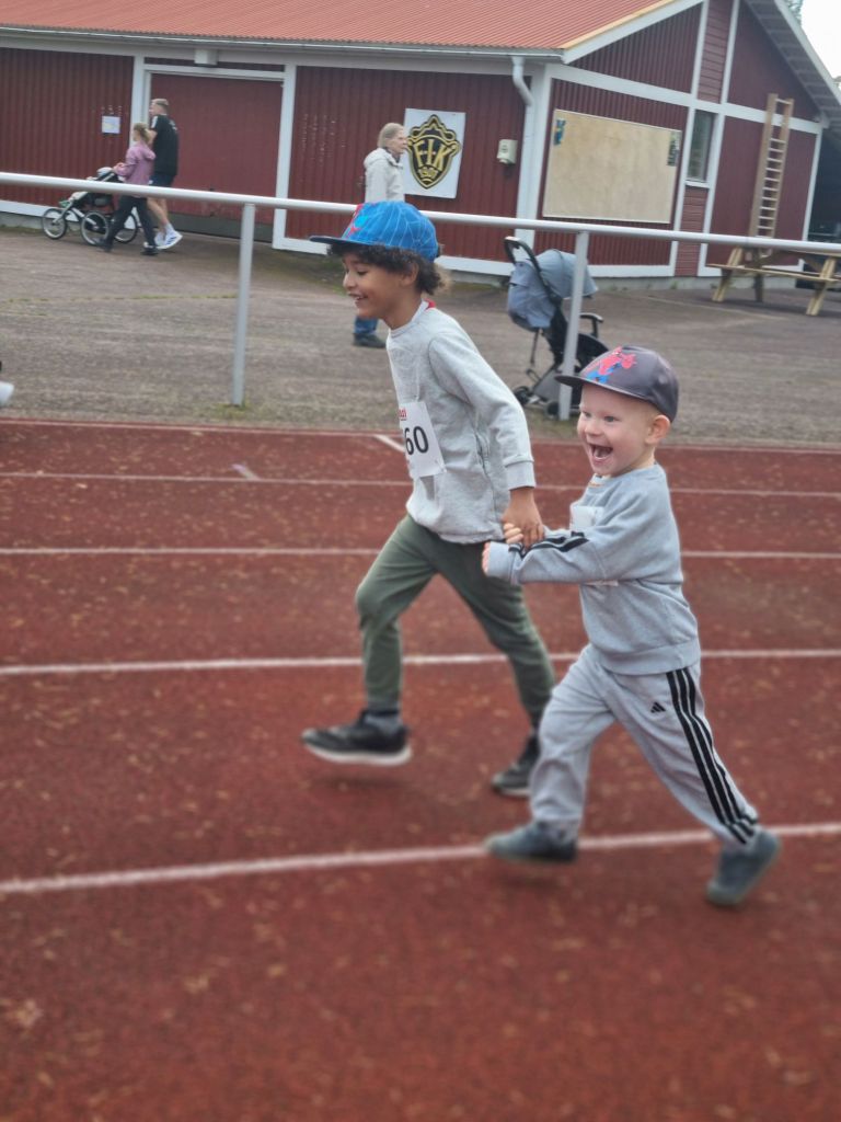 Alex tog sin lilla kusin i handen vid start och så sprang de, hand i hand genom loppet. När de fick syn på hos hejade vid målrakan så såg man stoltheten och lyckan hos grabbarna. Så duktiga och gulliga.