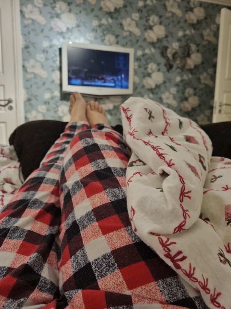 Vi har bäddat med de finaste jul-sängkläderna i flanell, de är så varma och sköna. Så jag drog på mig jul-pyjamasen och kröp upp i sängen och kollade på teve för mig själv medan barnen lekte hej vilt. Så skönt. December ska verkligen mysas in.