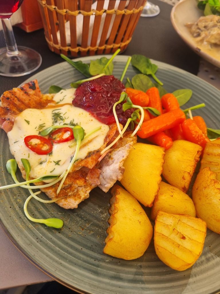 Middagen blev i solskenet på en uteservering. Här är våren verkligheten på ingång och körsbärsträden blommar. Jag åt fläskytterfile med ost, tranbär, morötter och potatis. Väldigt lokal mat och väldigt gott. Jag har nog aldrig blivit besviken på maten i det här landet och det är ändå mitt femte besök. Dock lämnar trafiken lite att önska i den här staden. Är helt galet med köer och det tar otroligt lång tid att åka någonstans.