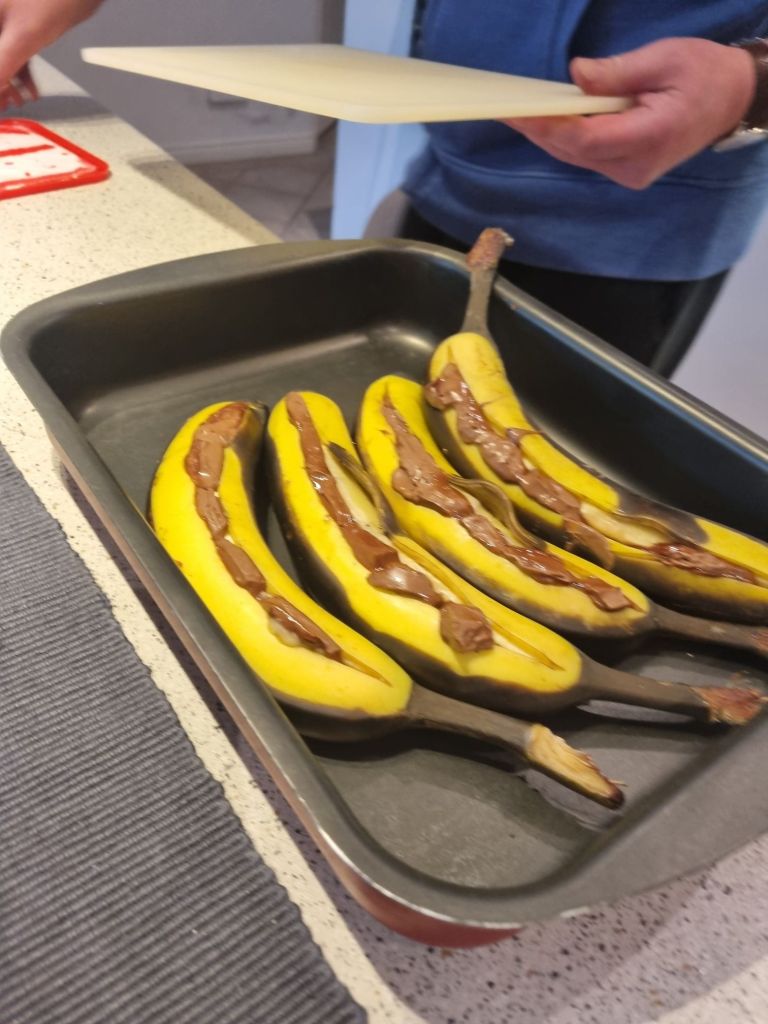 - Dela kakan i två delar och lägg den nedre delen på ett fat. Bred chokladkräm över kakan och lägg på det övre lagret. Fördela sedan resten av chokladkrämen på toppen av kakan.