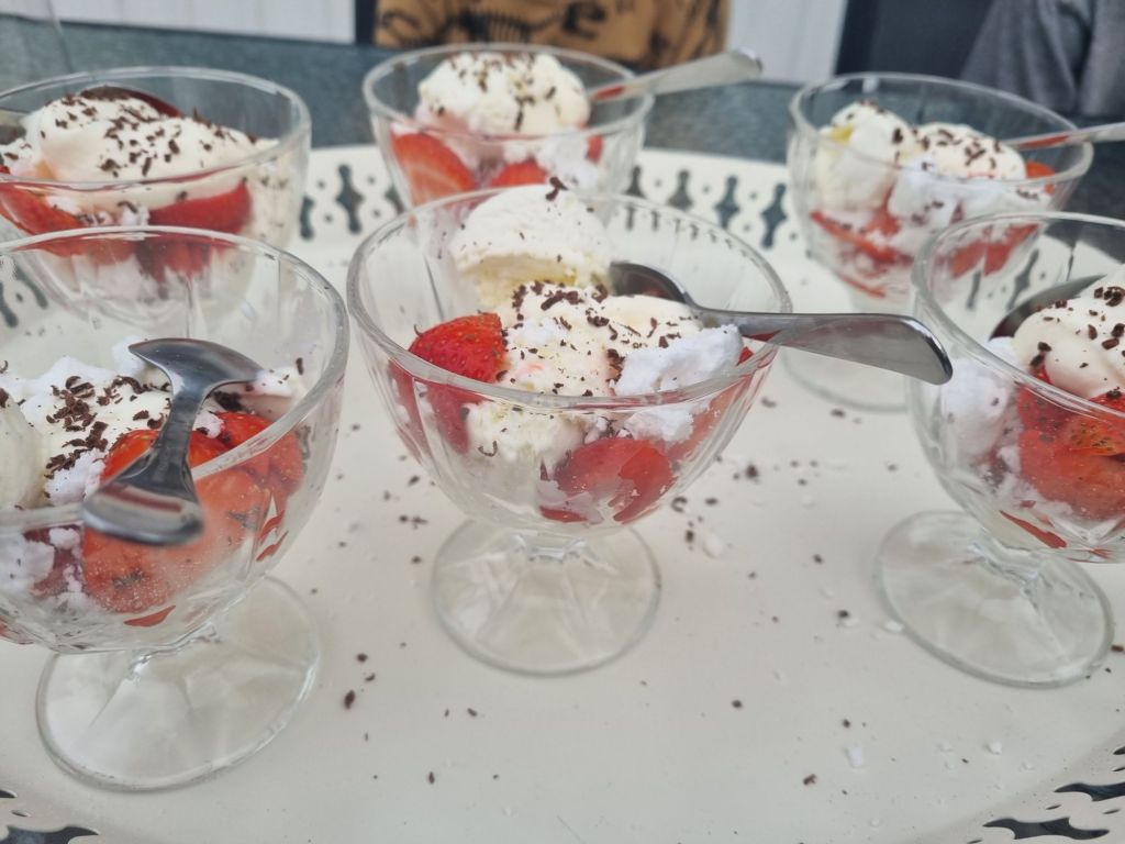 - Vispa äggvitor med salt. Tillsätt lite socker i taget och sen vaniljessensen. Vispa till ett styvt skum.