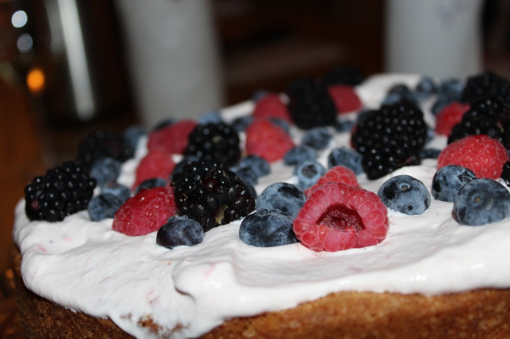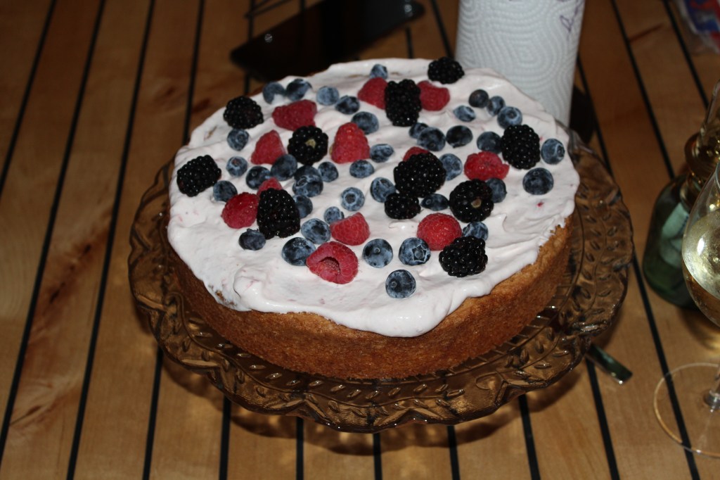 Här kommer tips på en väldigt god kaka. Vi gjorde den till efterrätt för någon helg sen, och den blev godkänd av hela familjen. Äggvitorna gör att själva kakan blir fluffig, vilket är perfekt då chokladganachen som är till är ganska mastig.