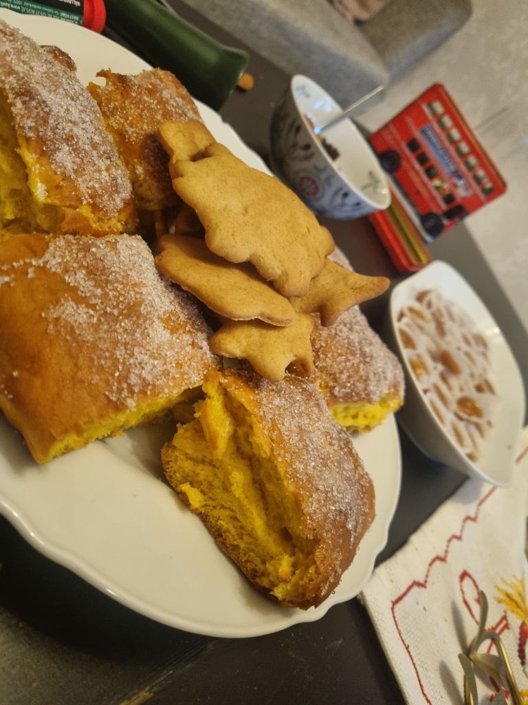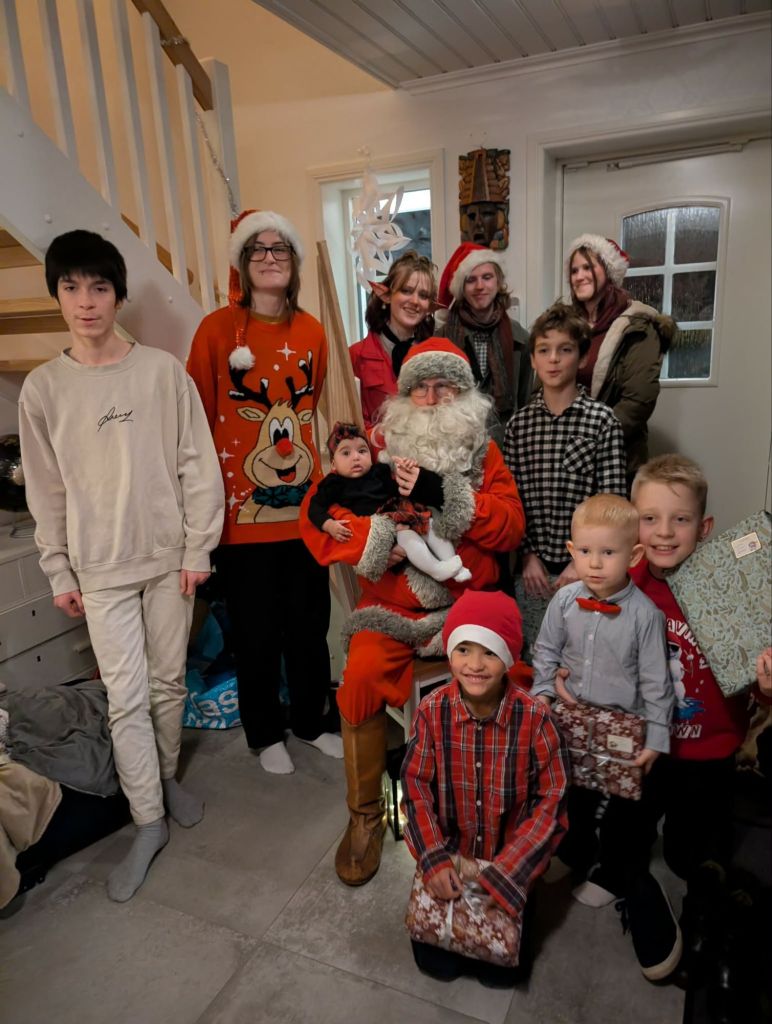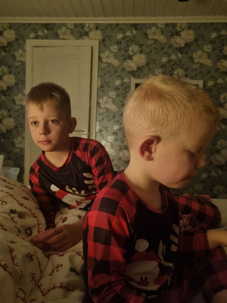 Vi startade dagen med att barnen smög upp och hämtade sina julstrumpor, som under natten fyllts på med julklappar. Så öppnade vi våra paket i sängen, och sen satte vi igång sista avsnittet av julkalendern. Årets julkalender var väldigt bra, alla här hemma har följt den med spänning.
