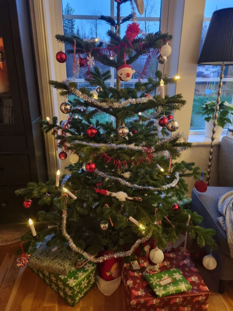 Sen kom släkten och gammelfarmor för julfirande. Vi började med att fika, dricka glögg och se på Kalle. Sen blev det middag och oj som vi åt. Maten blev så himla god och alla var så nöjda. Sen kom tomten och delade ut julklappar. Ludvig var så exalterade att han inte kunde stå still. En sån magisk reaktion på tomten ❤