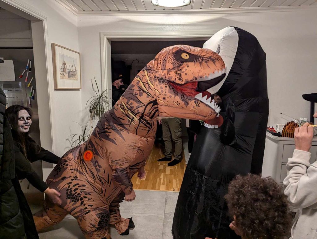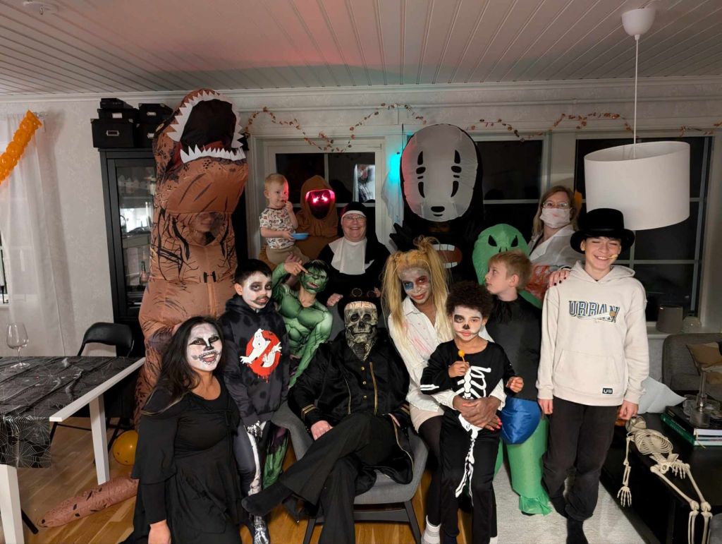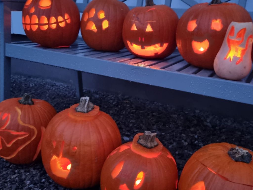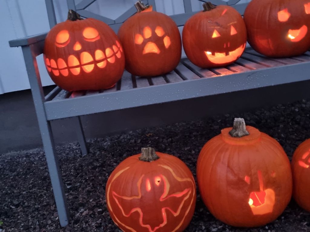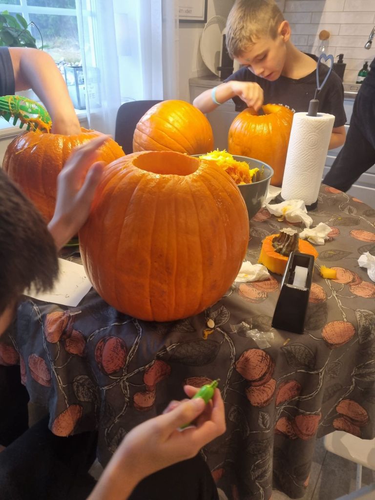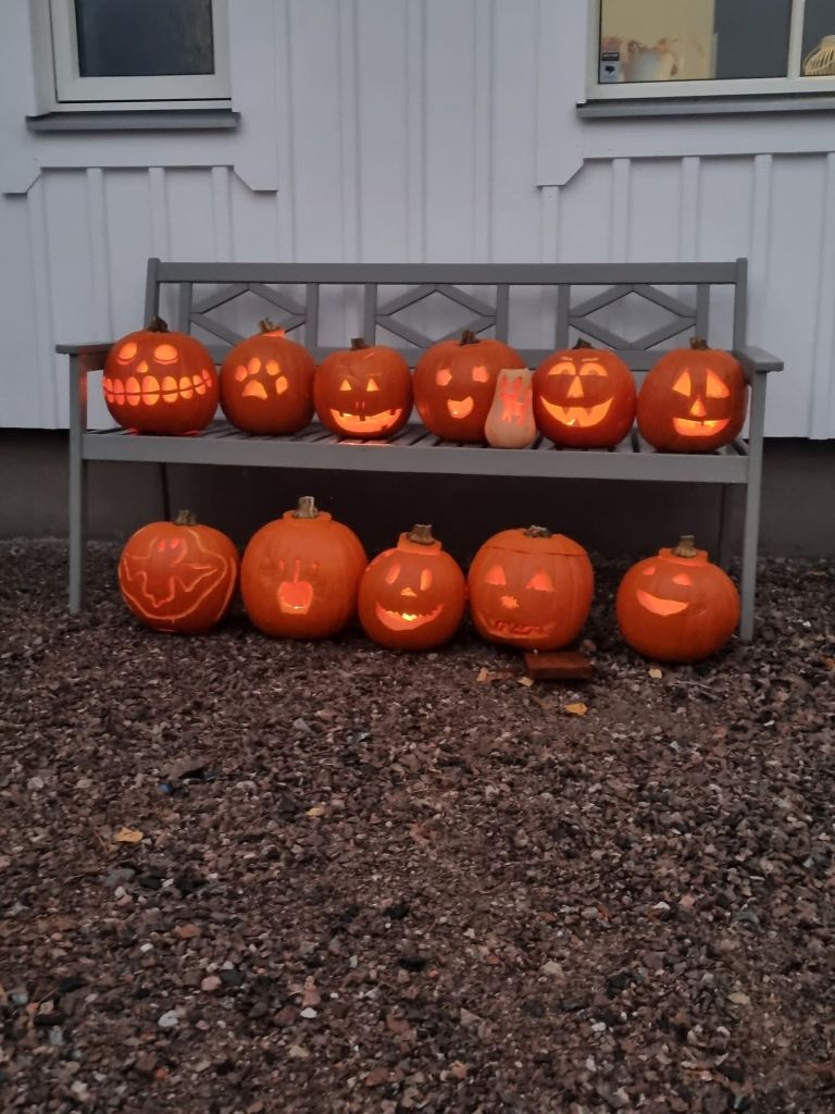 Sen blev det Halloween-fest igår. Tre stycken var vi som var utklädda till pumpor, jag Luddis och Stacey 🎃 Barnen gick ”bus eller godis” sen gjorde vi en spökstig i skogen. Vi lyckades skrämma några av dem rejält 👻