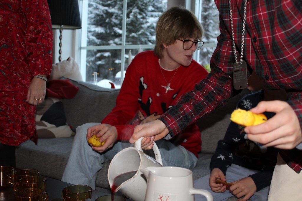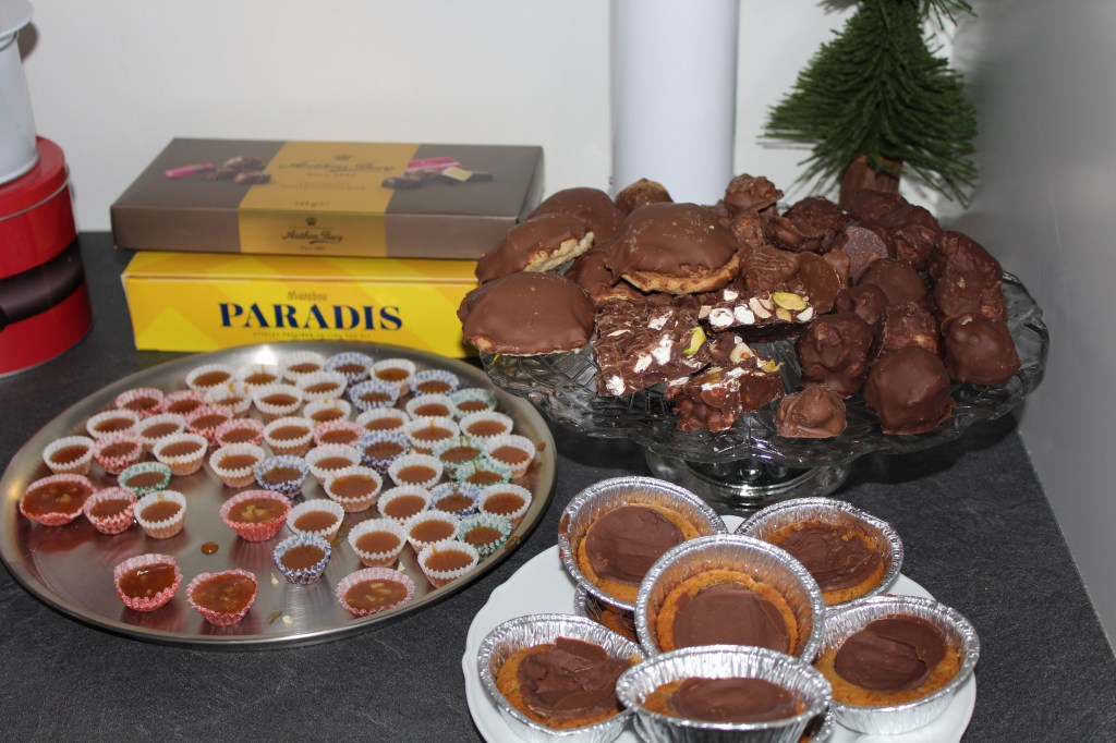 När gästerna kom dukade vi upp lite glöggfika samt godisbordet. Så mycket gott det fanns att välja på. Jag har gjort knäcken, men i övrigt har andra bakat allt gott 🙂