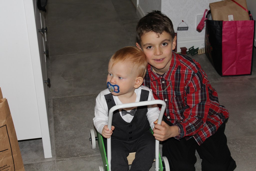 Mina fina pojkar som väntar otåligt på att det ska komma gäster. Som barn känns det som att julafton är en enda lång väntan, men nu som vuxen tycker jag att det går så himla fort.