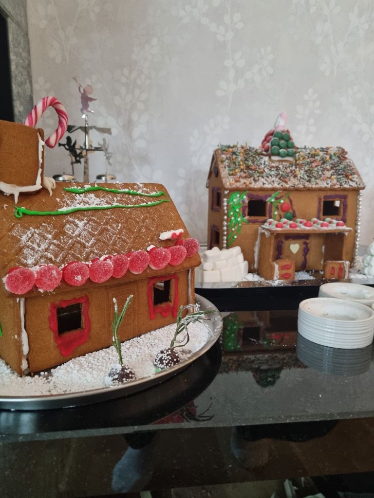 Vårat tävlingsbidrag från igår, vårt hus längst in. Gav oss en fin andraplats som man får vara stolt över. Var tuff konkurrens. Det andra huset är det som barnen gjort helt själva ❤️