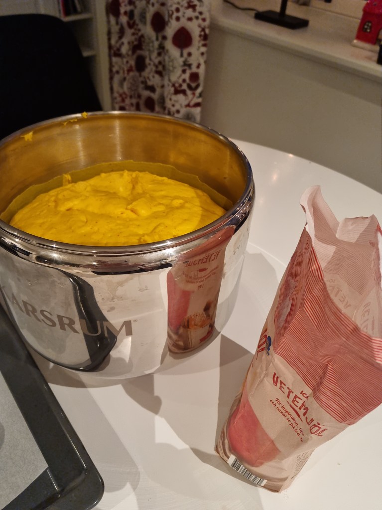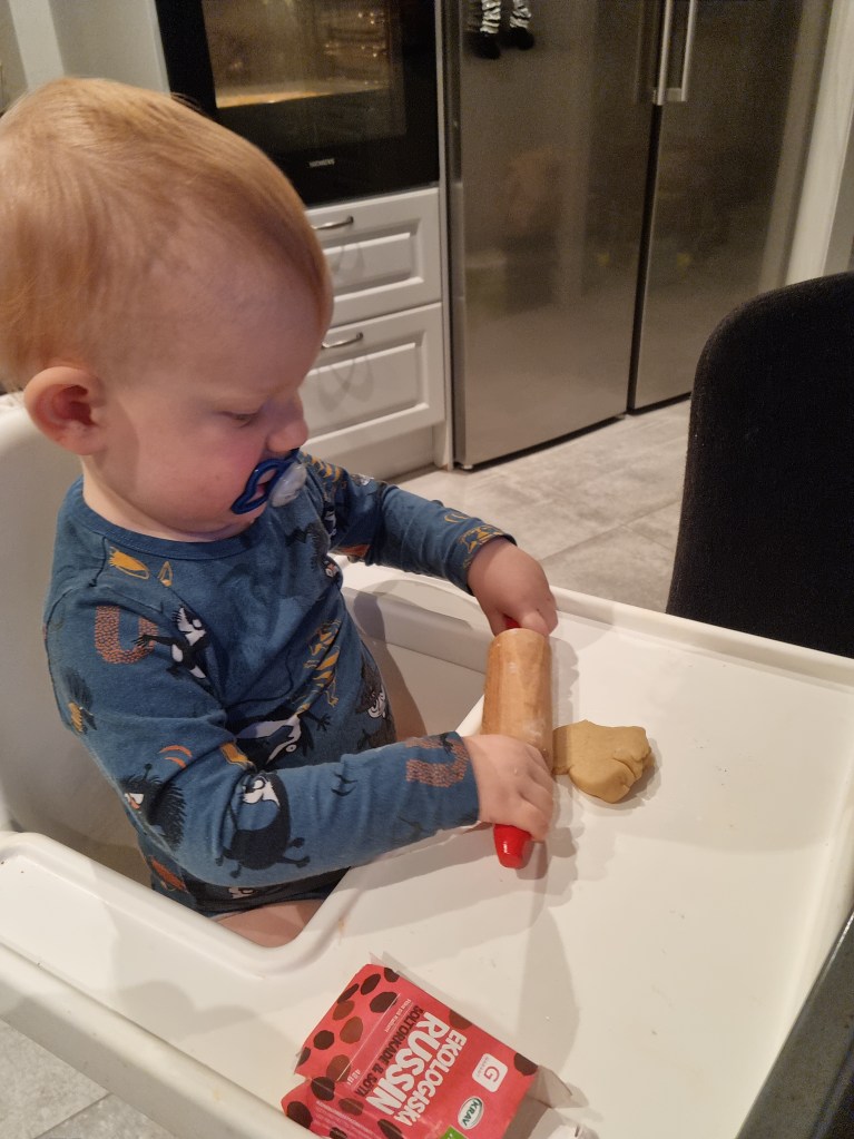 Jag fick lov att ta ett blöjbyte mitt i så min knäck kokade över. Som tur var mamma där och kunde hjälpa mig få rent diskbänken 😃
