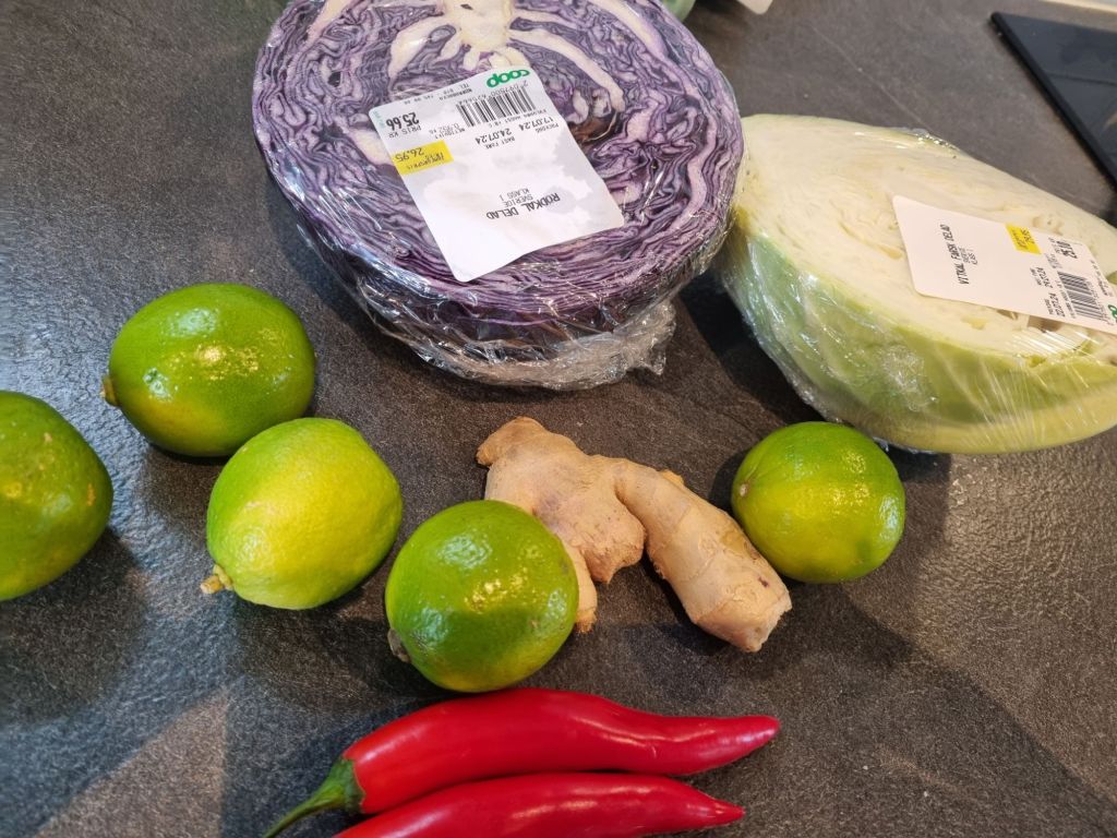 ½ citron, skal + saft