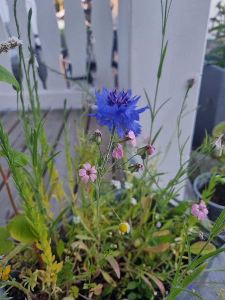 Mina fina blommor, är som en blomsteräng i miniformat på trappen. Dock börjar vissa blomma över nu, ett tecken på att hösten närmar sig med stormsteg.