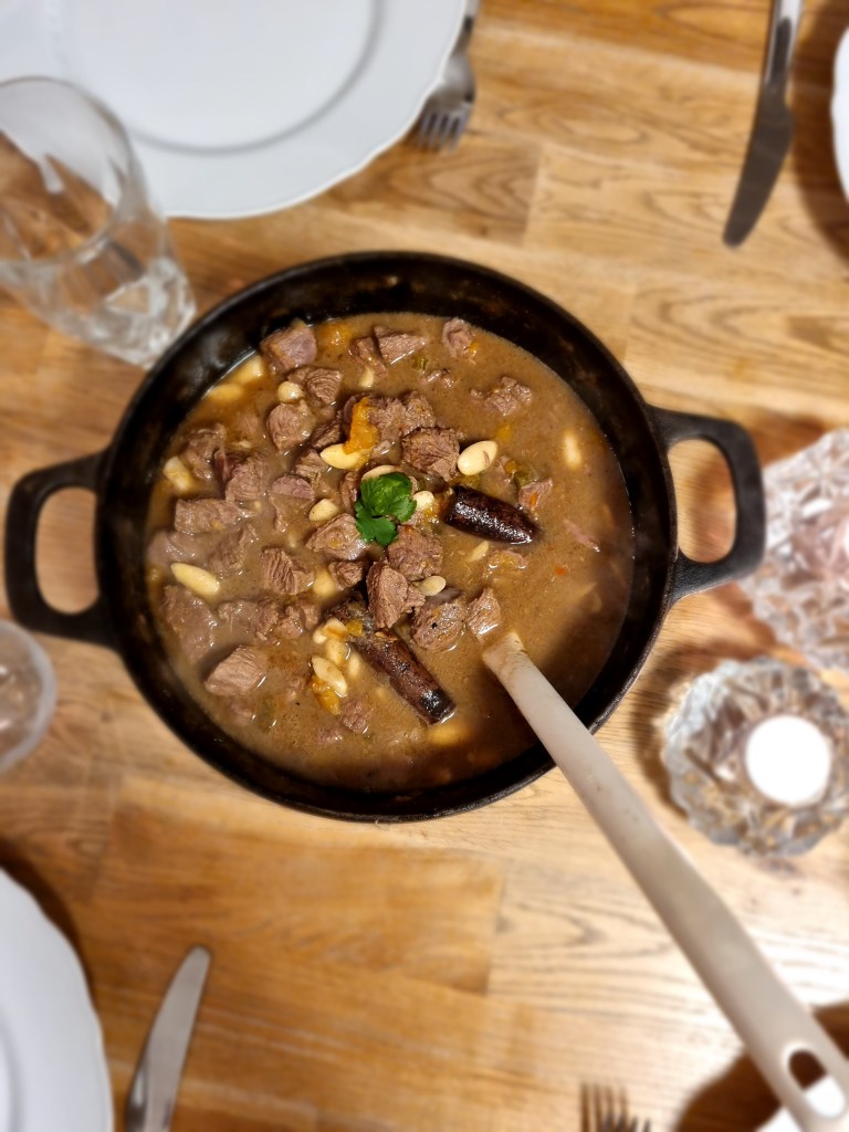 - Servera rotfrukten och korven med paprika- och bönröran, toppa med persilja.