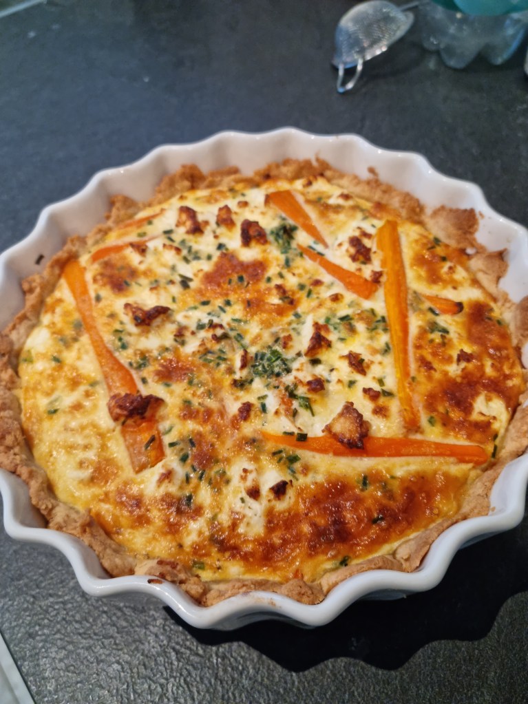 - Grädda i ugnen 15-20 minuter, tills pajen är gyllene och genomgräddad.