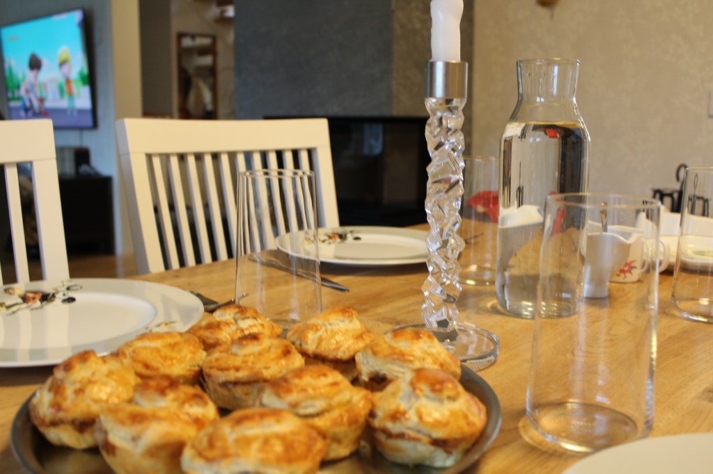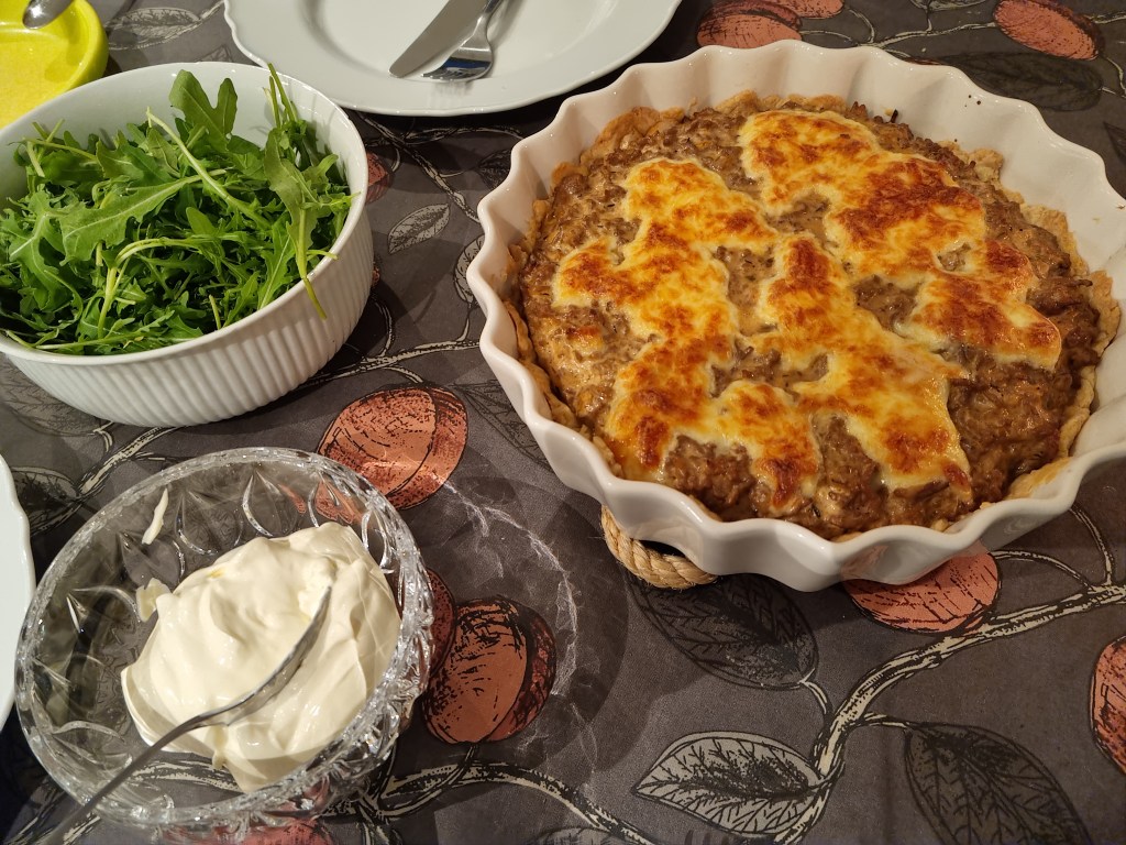Vi lagade en svamppaj, vilken blev väldigt god. Speciellt med den goda Gruyere-osten som vi hade på.