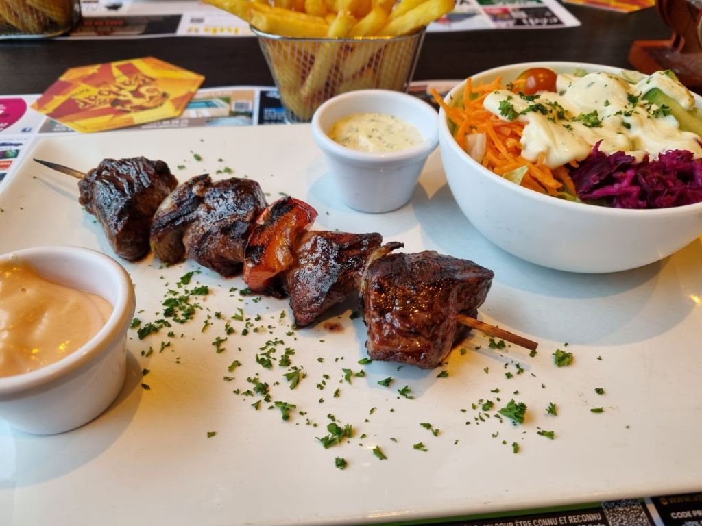 Gårdagens middag blev grillspett, som var väldigt gott. En väldigt god sallad serverades också till, så hela rätten kändes fräsch och god.
