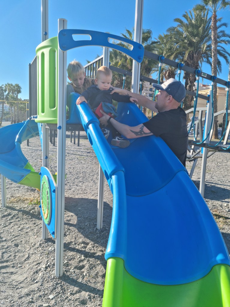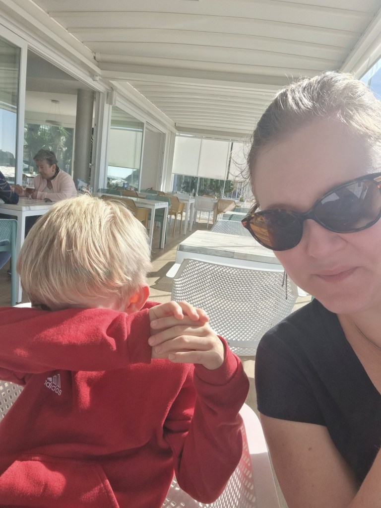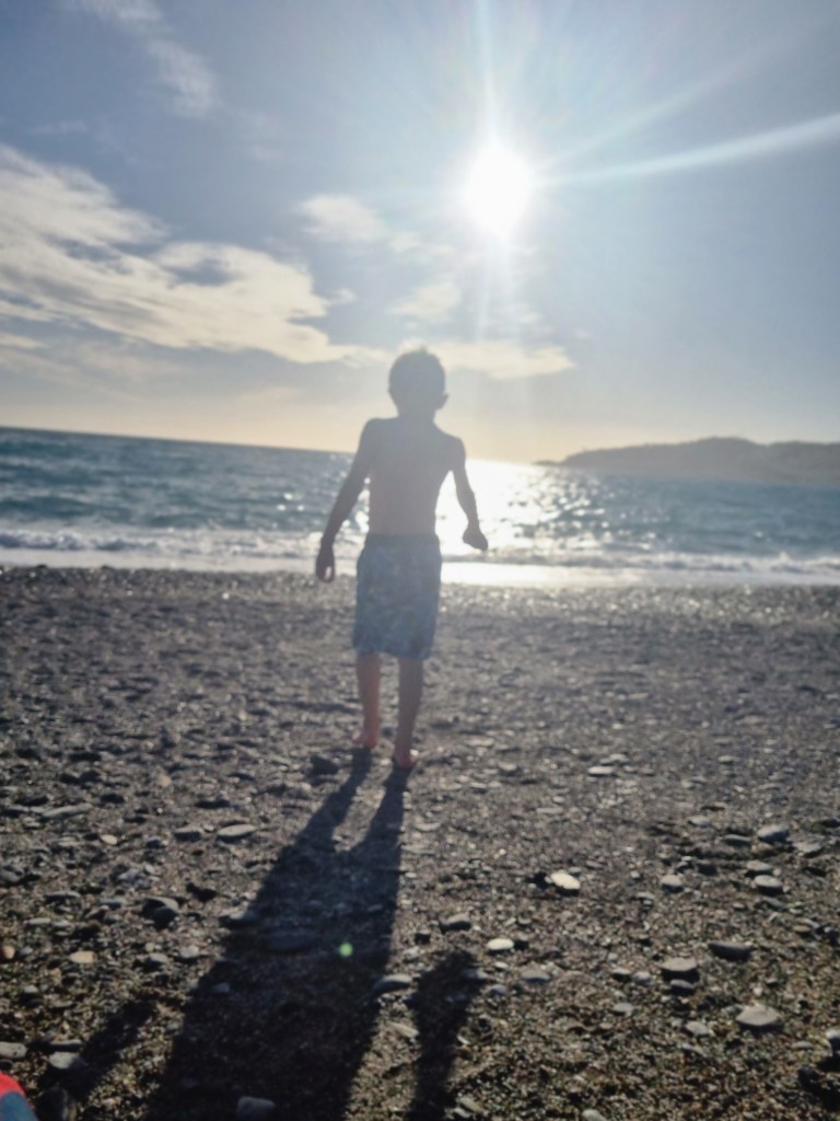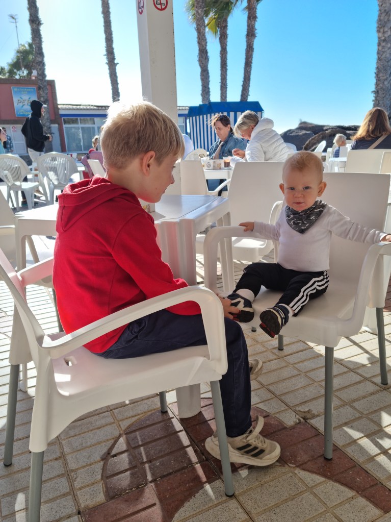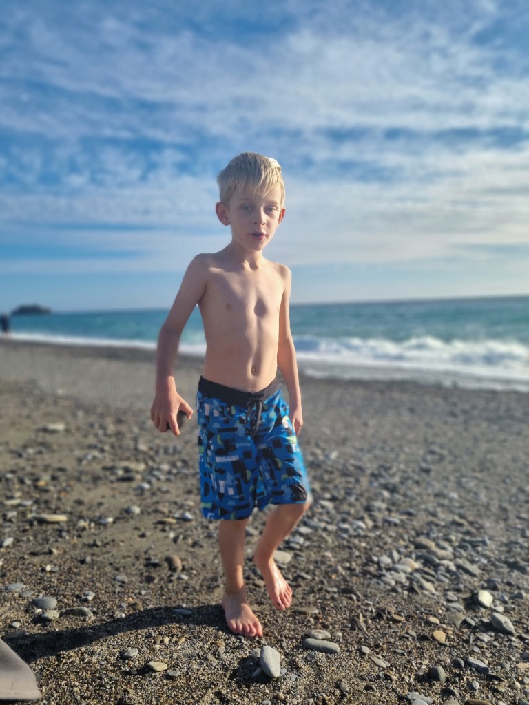 Vi startade dagen med kaffe och churros. Sen tog vi en promenad innan Lukas bestämt skulle bada. Det var kallt, riktigt kallt. Men det bekom honom inte, utan han hade så roligt.