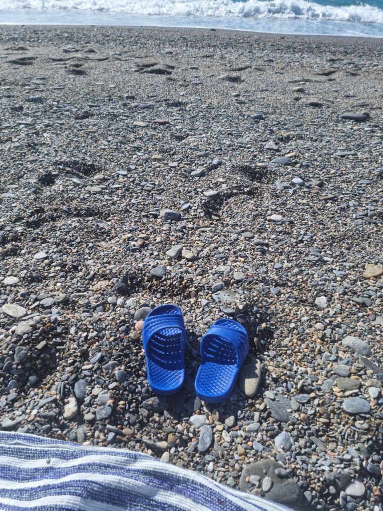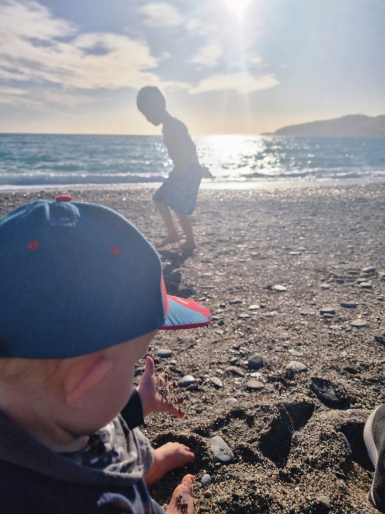 Igår spenderade vi eftermiddagen på stranden. Lukas badade för fullt, och Ludvig lekte med stenarna. Själv satt jag bara och njöt av hela situationen. Är något enormt rogivande med havet och vågorna som rullar in.
