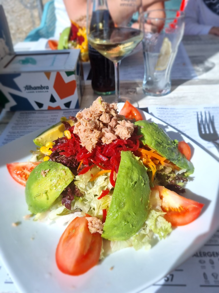 Där åt vi avokado- och tonfisksallad. Som tapas fick vi lite Paella som var väldigt god.
