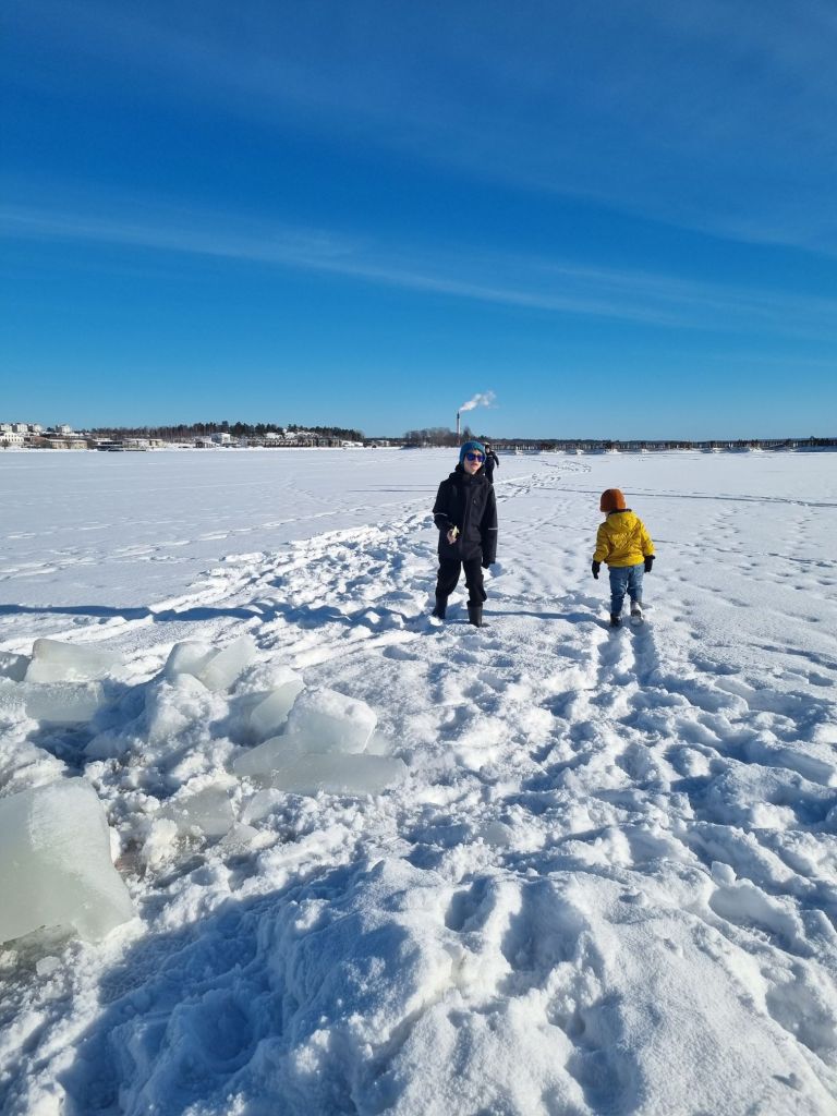 Vädret höll i sig och mellan matcherna gick vi ut och bara njöt. Vi tog en vända på isen och solen gassade verkligen. Så underbart tecken på att våren är på väg.