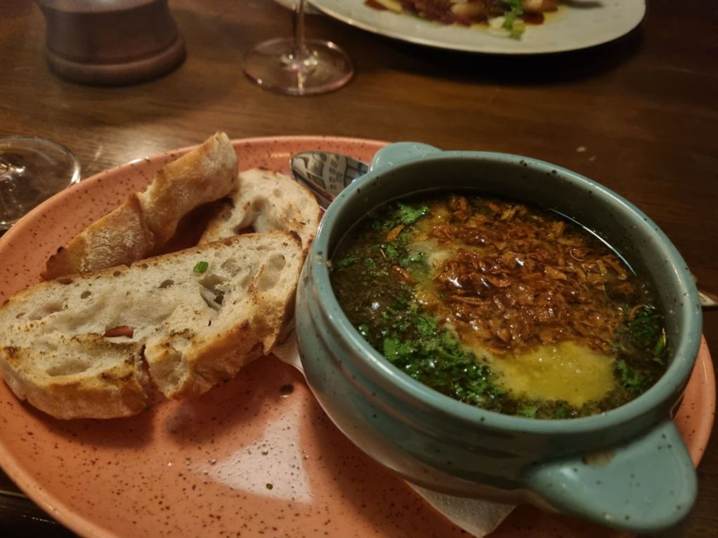 Nu sitter jag på tåget hem. Till lunch idag blev det en tråkig sallad från flygplatsen. Något trevligare i matväg var det vi åt igår.
