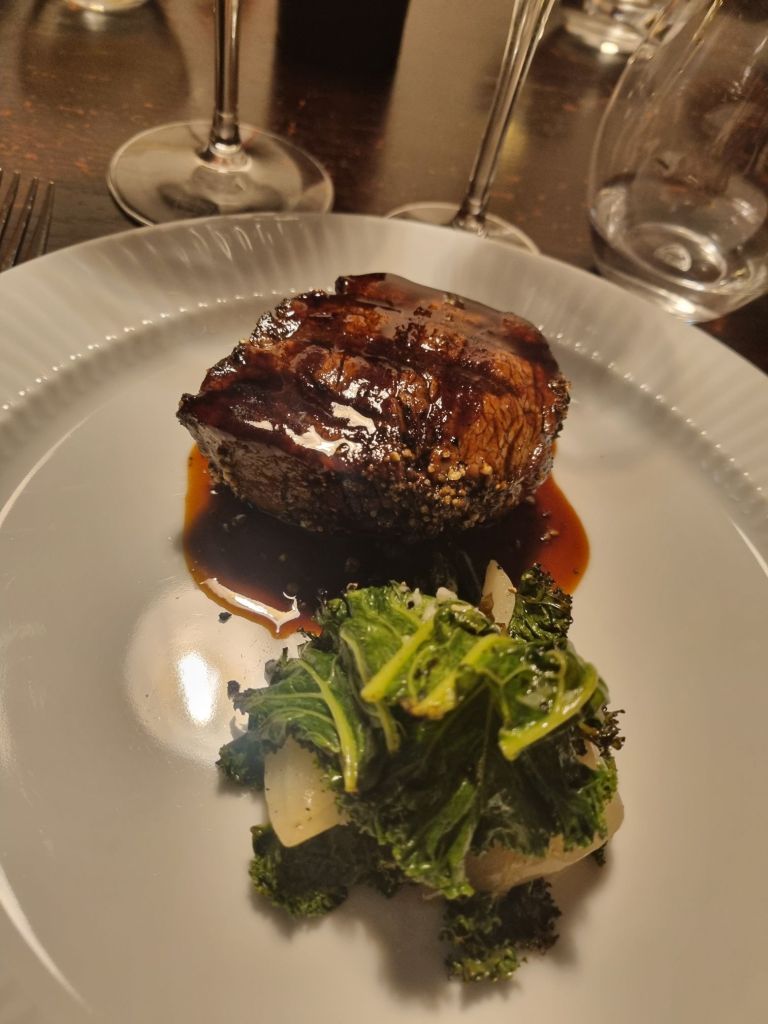 Vi lyxade till lite och gick på CG i Luleå. Maten var fantastisk. Min amerikanska kollega ville ha ren, något som tydligen inte äts hos honom. Själv tog jag en pepparstek, som var väldigt väldigt god. Var så mätt efter så jag faktiskt hade lite svårt att somna på kvällen.
