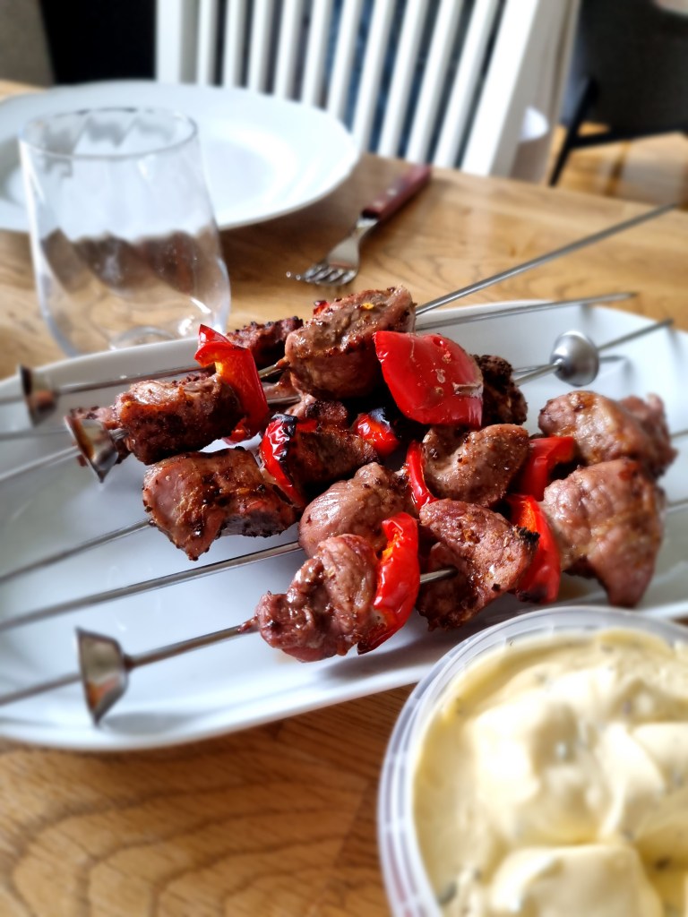 Jag sprang över till mamma och lånade deras inomhusgrill från åttiotalet. Kändes lite roligare att servera fläskfilé på det sättet 🙂