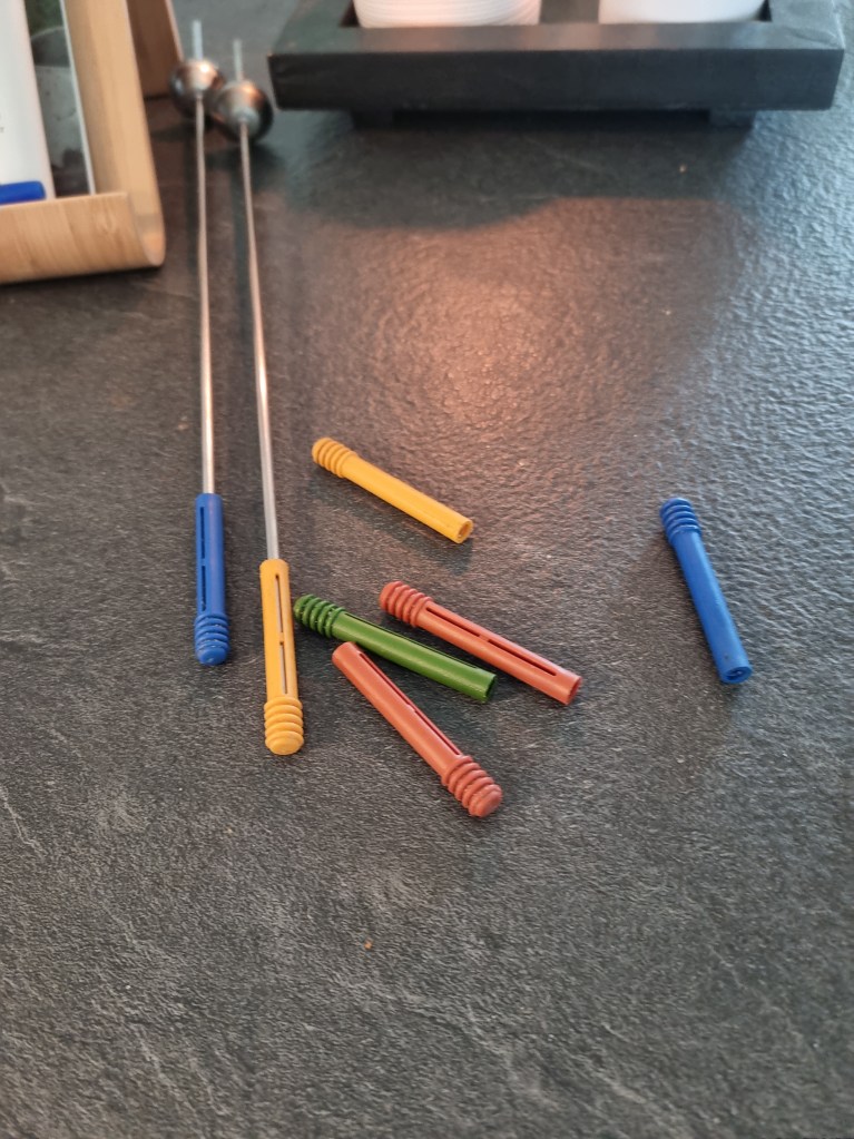 Man ser till och med på färgen på skydden till spetten att det är från några årtionden tillbaka. Men jag älskar dessa gamla redskap, är så roligt att laga mat på annorlunda sätt.