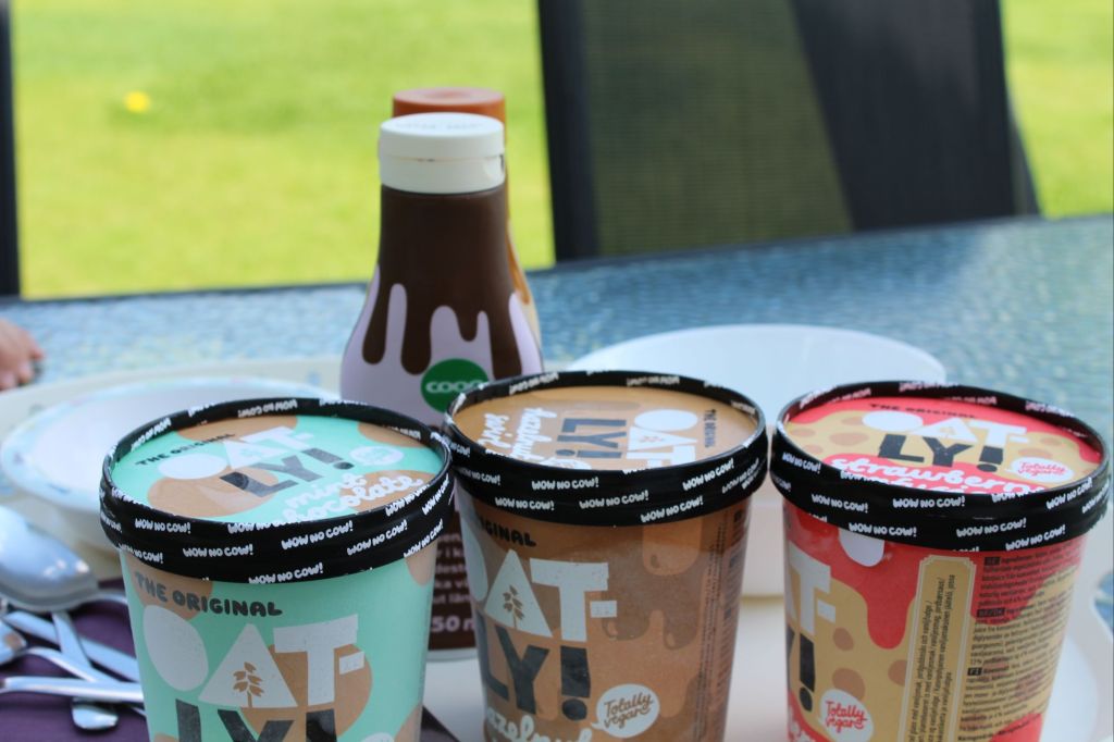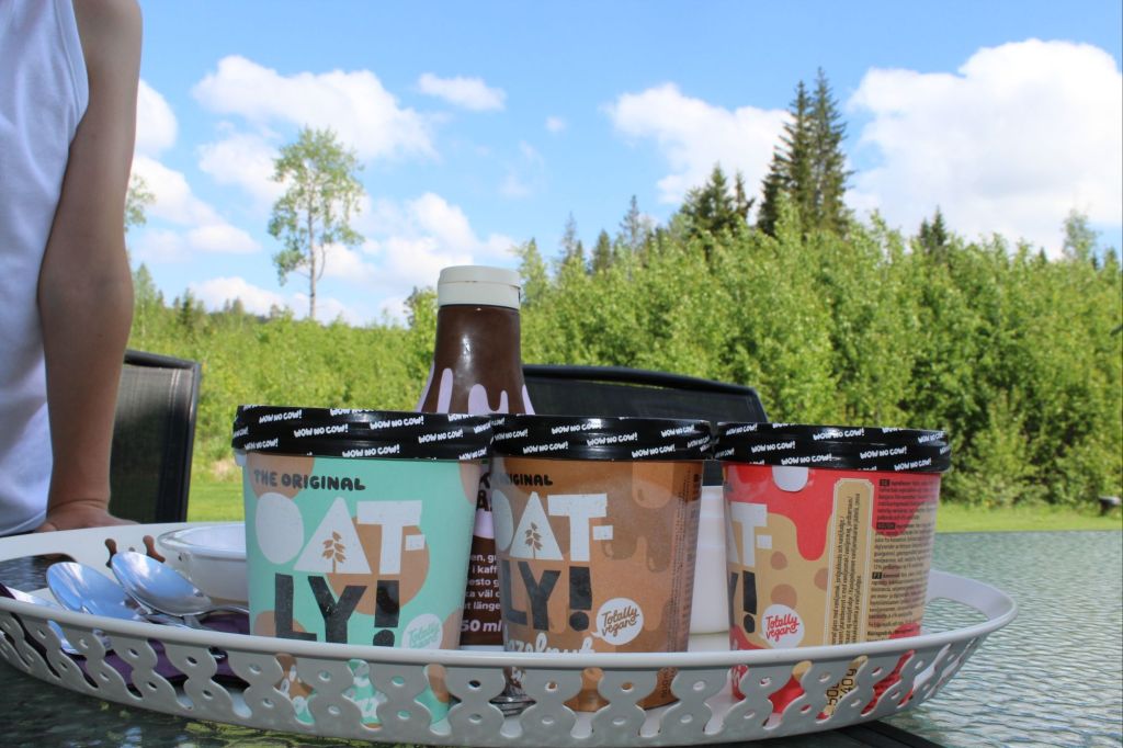 Sen smög vi ut och testade vi lite olika glassar som vi fått i Smakboxen. Glassarna var från Oatly och var riktigt goda. Alla hittade en varsin favorit 🙂 Så härlig årstid nu, när man kan sitta ute på baksidan och det är varmt och härligt. Vi har skugga på vår baksida fram till eftermiddagen/kvällen så det är en skön plats att söka skydd från solen på. Sen att vi har en grön mur mot hygget på baksidan gör inte heller något. Helt ensamma med skogen.