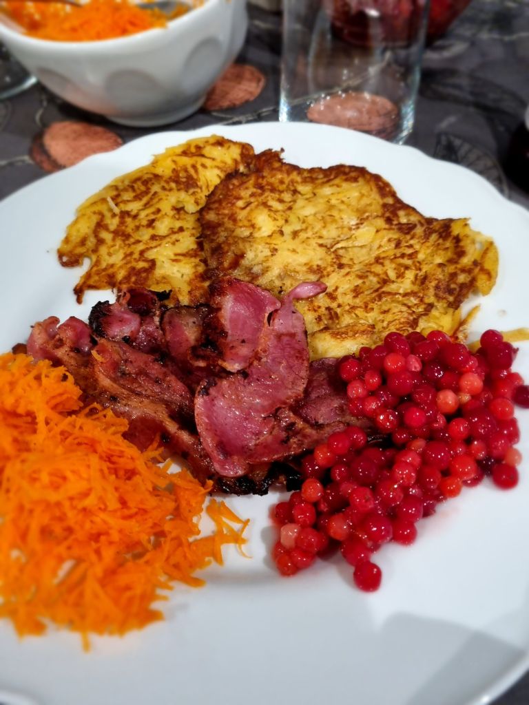 Servera gärna med rårörda lingon och stekt fläsk.