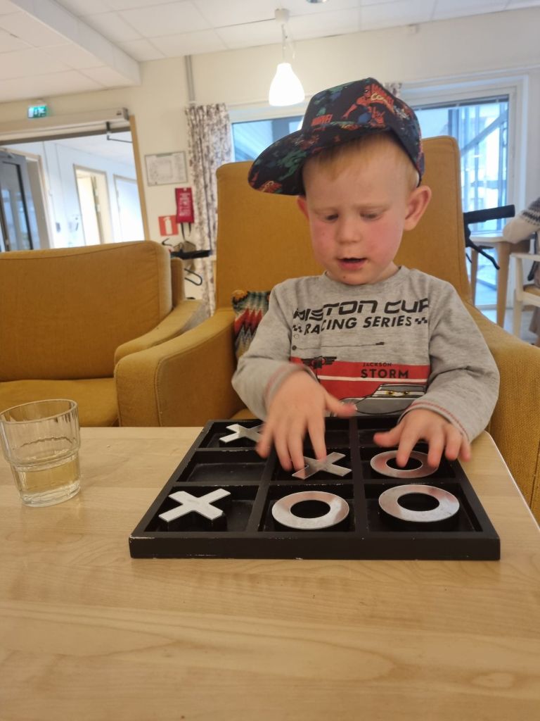 Igår, medan Lukas var på träning, passade jag och Ludvig på att hälsa på min farmor som bor på ett äldreboende precis i närheten. Hon blev så glad över att se oss! Ludvig sprang runt och utforskade allt med stor nyfikenhet. Personalen var så gullig – han fick både saft och kakor, och vi hittade spel och pussel som vi roade oss med en stund. Ludvig tyckte att det var ett riktigt trevligt ställe.